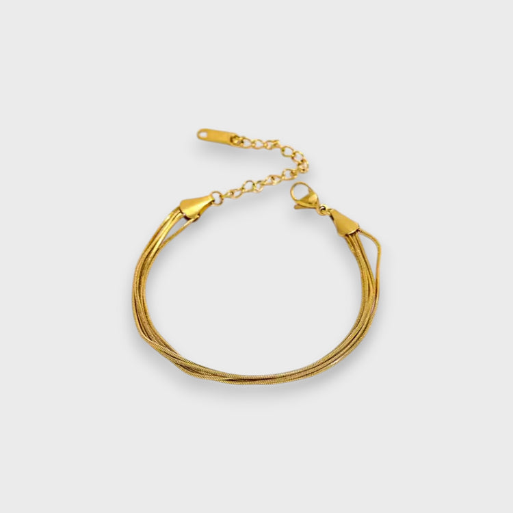 Introducing our MAYA bracelet, in 18K gold PVD. Its water-resistant finish ensures durability, while its lightweight construction makes it comfortable to wear every day. Perfect worn alone or paired with our matching MAYA necklace.